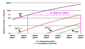 Les électrodes E3® fonctionne beaucoup plus frais donc prolongeant la vie de la pointe! Les électrodes E3® fonctionne à une température inférieur d’environ 1650° F
